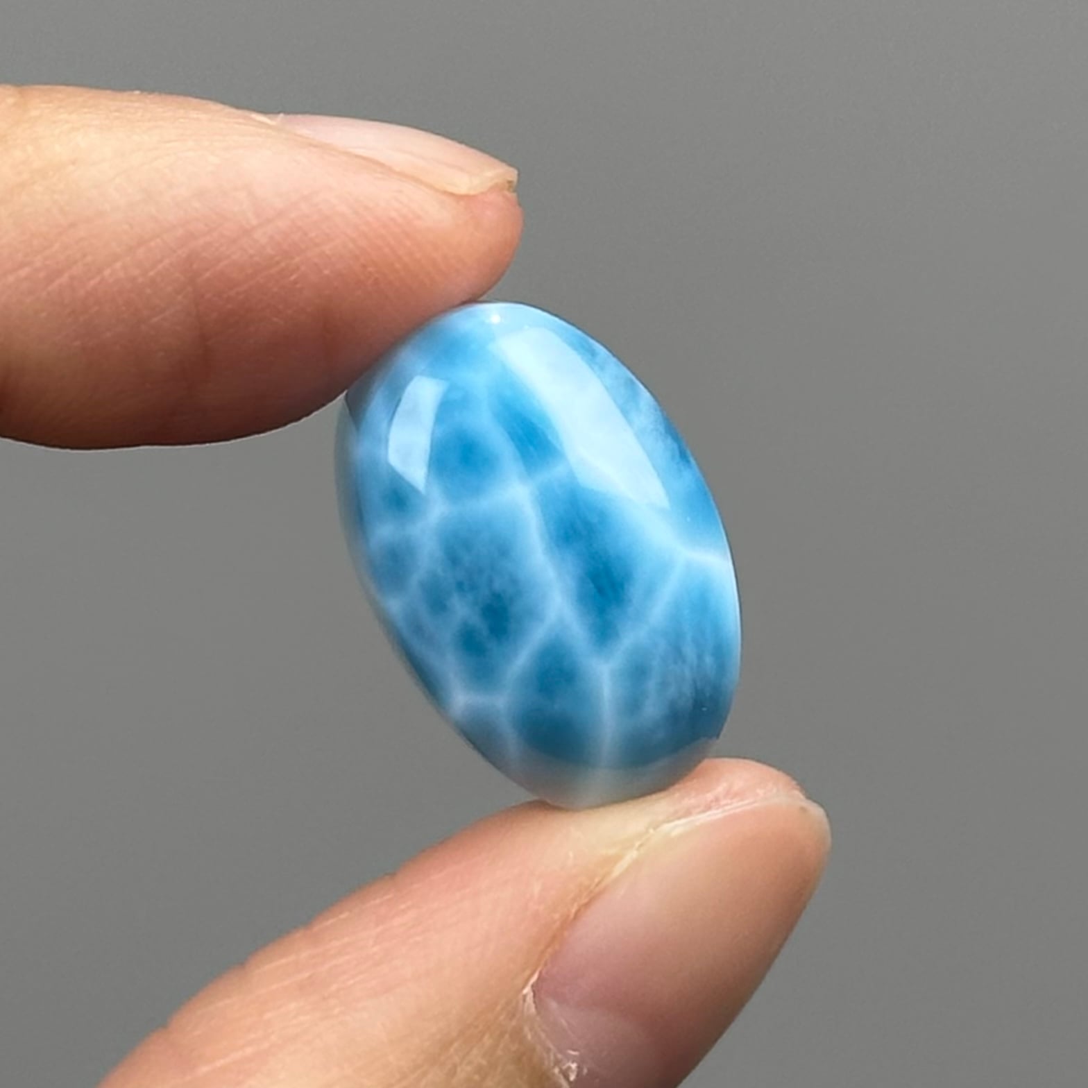 Size: 1.5 x 1.2 x 1cm Weight: 3.81g Locality: Dominican Republic - 多明尼加共和國 · 拉利瑪石是多明尼加共和國(Dominican Republic) 的國石,Dominicana位於加勒比海的島國,同時拉利瑪美麗的藍色活像加勒比海,因此又稱為海紋石。 拉利瑪名字由來自Dominicana (多明尼加)的寶石商將他女兒的名字”Lari”和西班牙語的海”mar”合在一起,就成為Larimar的名字。 拉利瑪在亞特蘭提斯時代又被稱為「月光之石」,它蘊含大地之母的能量,可以啟動一個人內在的女性特質,用於治療心輪,幫助維持內在與身心的平衡,調節情緒。 在亞特蘭提斯時代,拉利瑪被用來協助懷孕中的婦女穩定胎兒,亦常被置放在嬰兒懷裡防止哭鬧,同時幫助人帶走傷心、恐懼與莫名的無助感。 拉利瑪是一種能夠促進和平和協調的寶石,可以使感情平衡,平靜憤怒,解決紛爭。此外,也具有美容效果,可以平衡荷爾蒙分泌,是一種美容石。