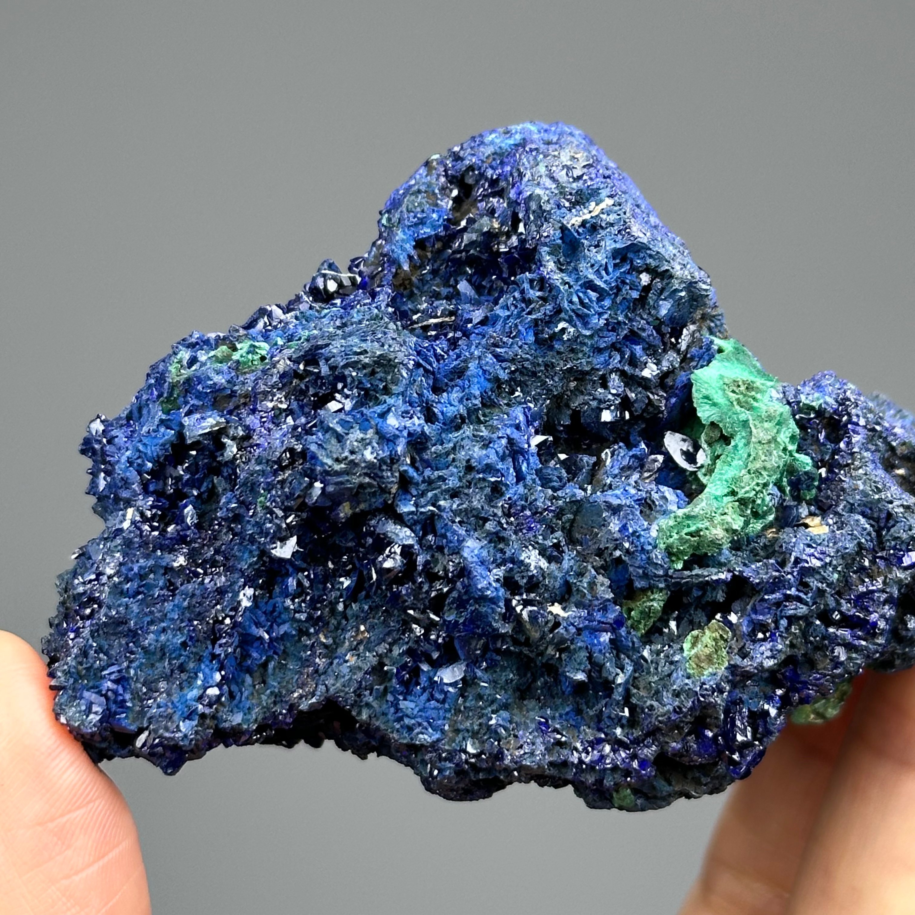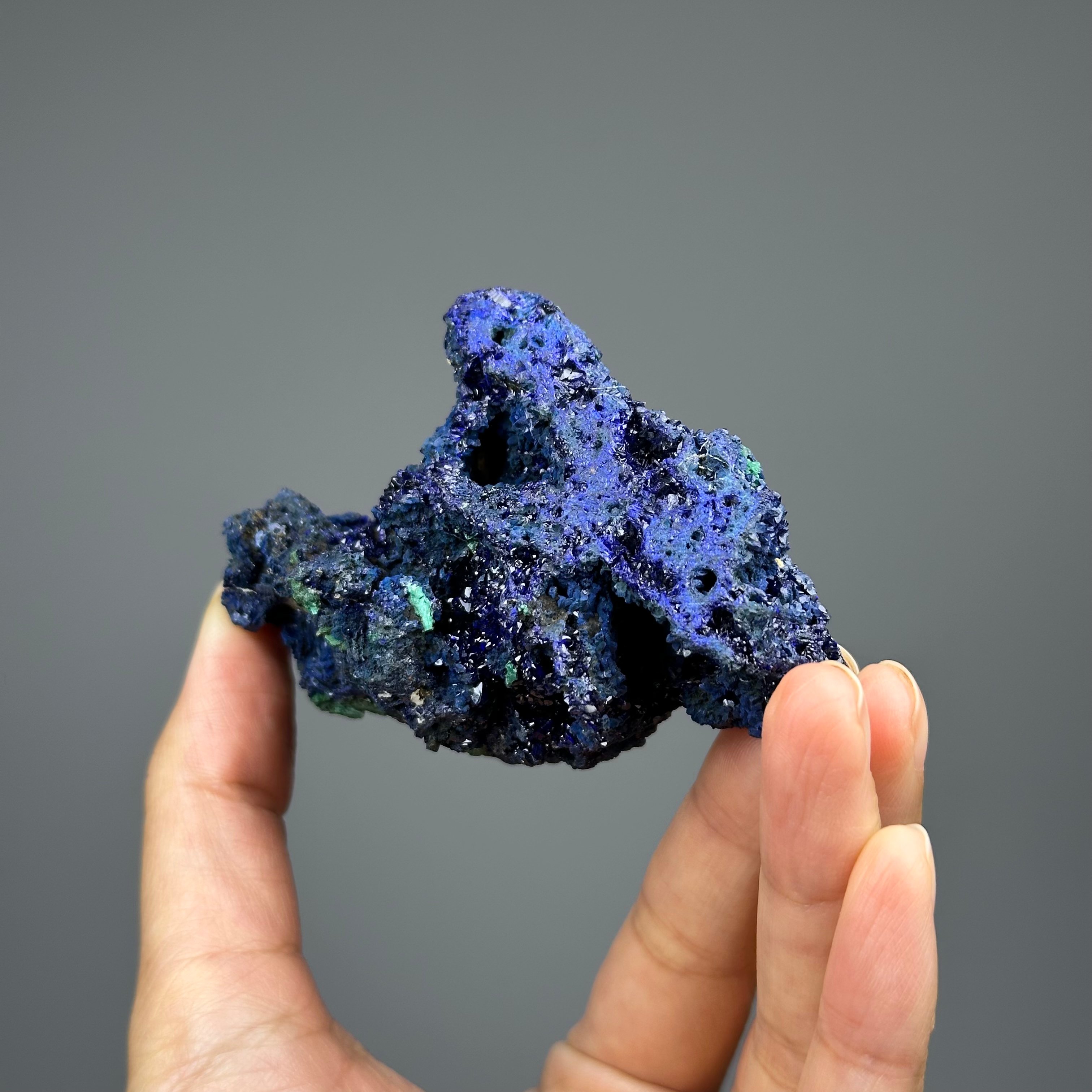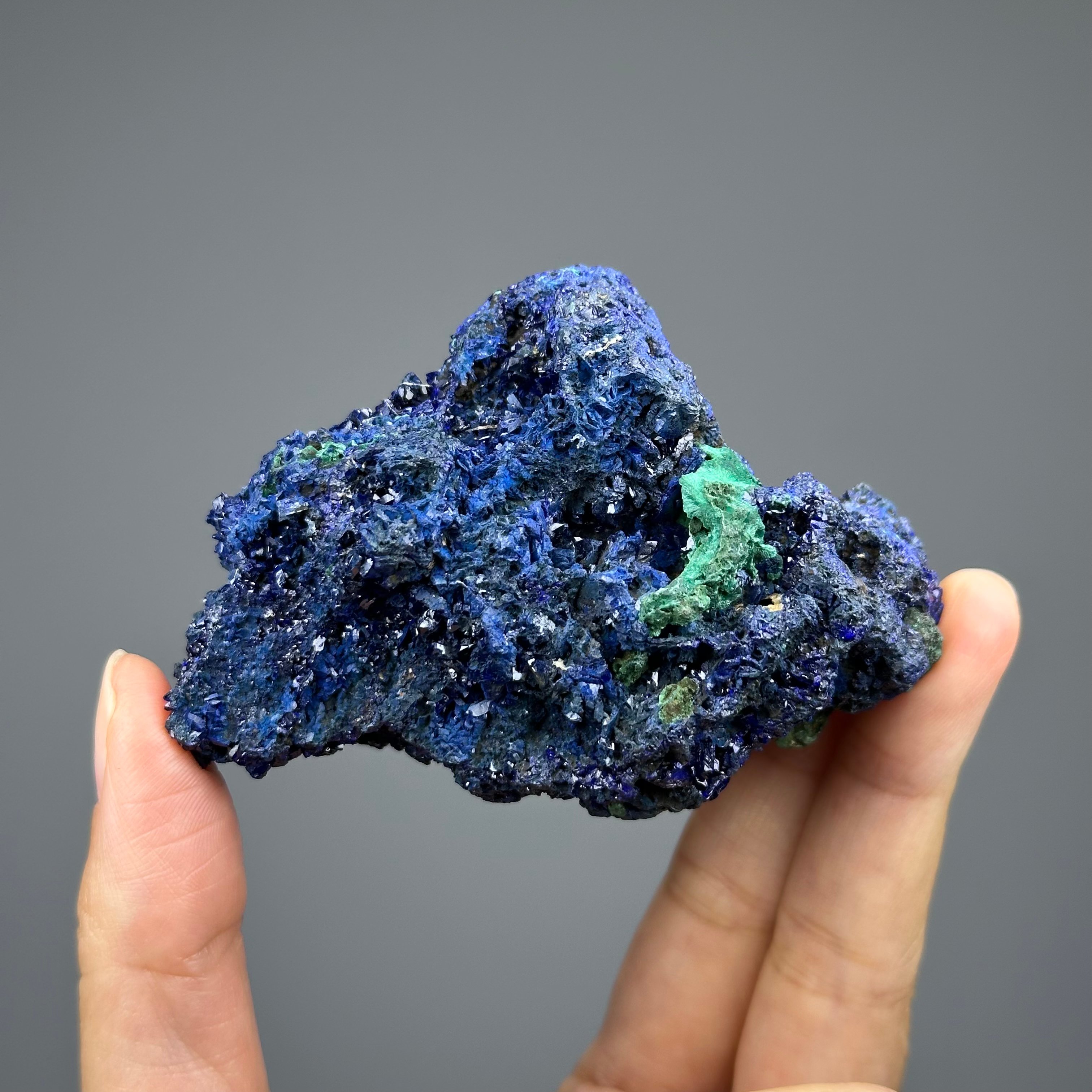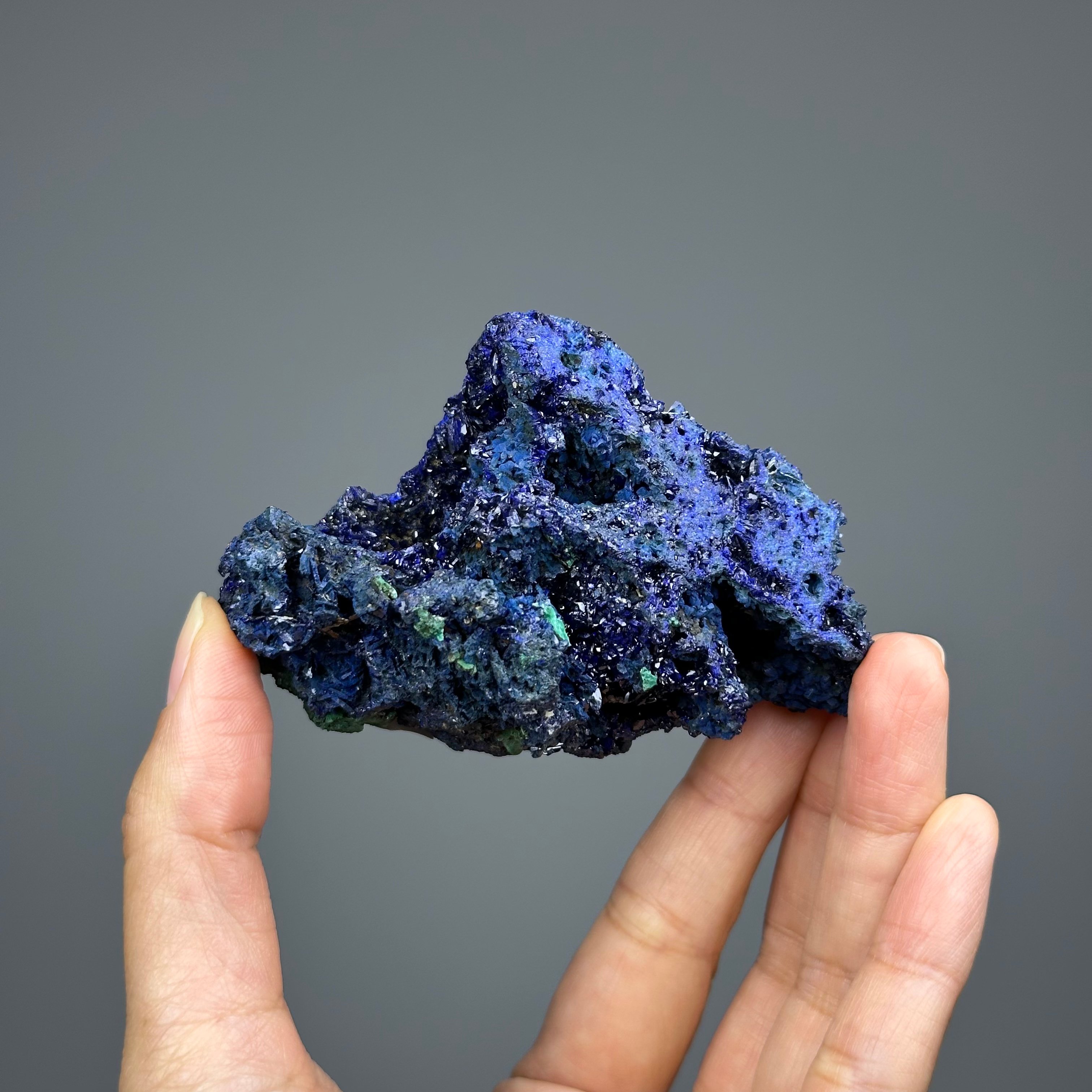 Locality: Laos - 老撾 · 【關於礦物】 名由:Azurite和天藍色Azure都來源於阿拉伯語的藍色 莫氏硬度:3.5-4 顏色:天藍色、深藍色至淡藍色 晶系:單斜 【象徵意義】 - 激活眉心輪(第三眼),幫助精神指導 - 帶來新的視角,拓展思維 - 消除壓力、擔憂和悲傷 _____________________________ 藍銅礦(azurite)是一種常見的含銅礦石,其名稱源於其深藍色的外觀。它是一種銅碳酸鹽礦物,化學結構為Cu3(CO3)2(OH)2。藍銅礦的顏色吸引了人們的注意,使其成為經常用於裝飾和藝術品的材料。 藍銅礦的產地非常廣泛,可以在世界各地的銅礦區找到。它通常與其他含銅礦物一起出現,例如綠松石和黃銅礦。藍銅礦的形成與氧化銅礦床中的含銅流體和地下水的作用有關。 藍銅礦在古代就已經被人們使用。古埃及人、古希臘人和古羅馬人都使用藍銅礦來進行藝術裝飾和顏料製作。它在中世紀歐洲的繪畫中也有廣泛的應用。藍銅礦的深藍色使其成為一種受歡迎的顏料,被稱為「天藍色」。 除了作為顏料和裝飾材料,藍銅礦還被用於製造銅。通過將藍銅礦經過熱處理,可以將其轉化為純銅或銅礦石。藍銅礦也被用於製造製導電銅和其他銅合金。 然而,由於藍銅礦中的銅含量相對較低,因此在現代銅礦業中並不常見。現代的銅開採主要集中在高銅品位礦石的開發。儘管如此,藍銅礦仍然受到礦物學家、收藏家和藝術愛好者的喜愛,並繼續在藝術和文化領域中發揮重要作用。 總結來說,藍銅礦是一種常見的含銅礦石,以其深藍色而聞名。它在藝術和裝飾領域中廣泛應用,並且在古代和中世紀的文化中佔有重要地位。儘管在現代銅礦業中並不常見,但藍銅礦仍然受到人們的喜愛,並持續在礦物學和藝術領域中發揮著重要作用。