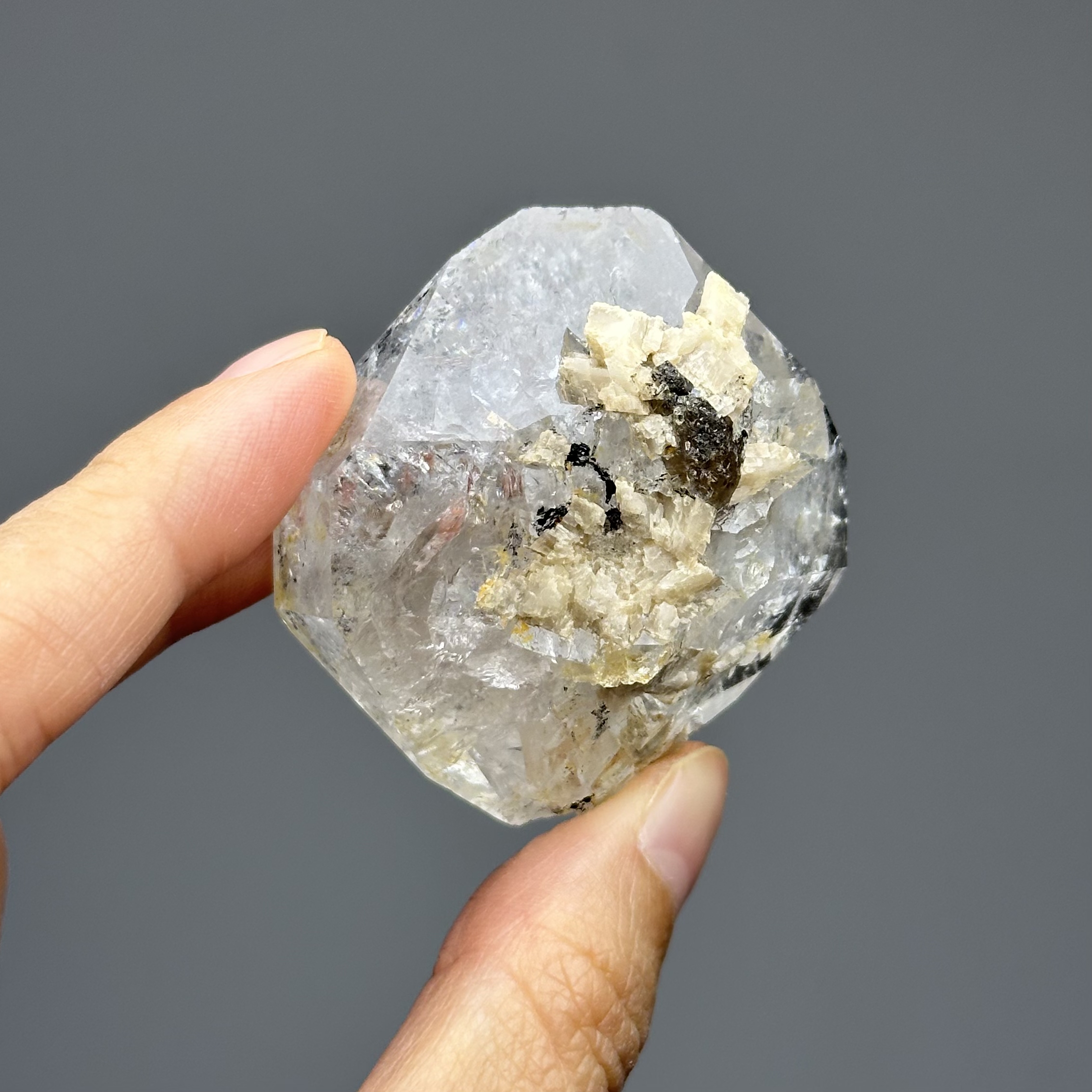 Size: 4.7 x 4.3 x 2.5cm Locality: Treasure Mountain Diamond Mine, Little Falls, New York - 美國紐約 · 雙尖閃靈鑽水晶是像鑽石一樣的八面體結晶,所以也有Herkimer Diamond的稱號。 因為是雙尖水晶,因此可以同時進入及釋放能量,使用閃靈鑽來靜心打坐,容易進入狀況,可以看見「光」,並融入「光」裡面。 閃靈鑽可以平衡、消除其負能量,赫基蒙雙尖水晶也是守護不受噩夢侵擾的幸運石。雙尖水晶耀眼的光輝,可以讓思考明晰,對於思考相當有用。