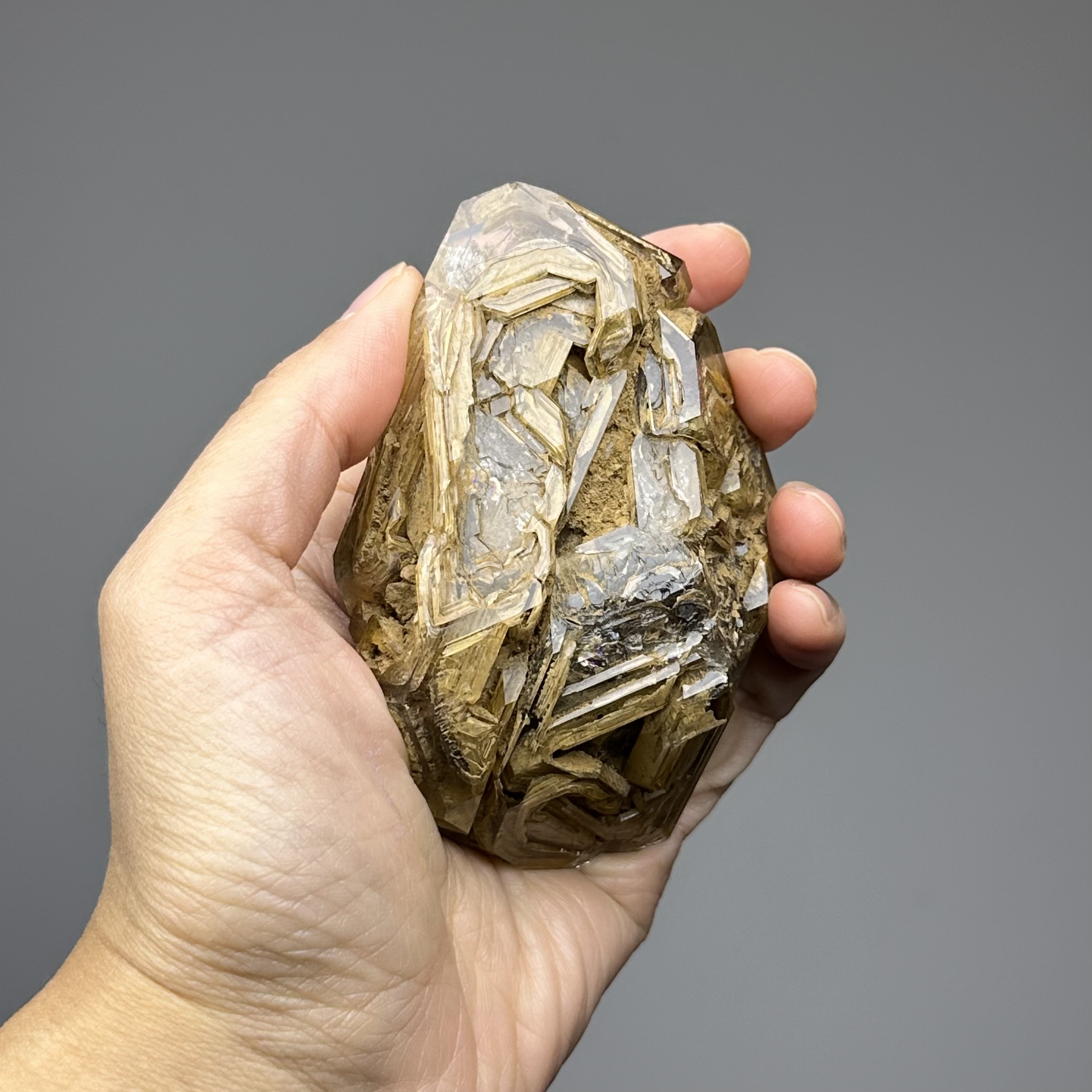【Elestial Window Quartz - 骸骨水晶】 · Size: 7 x 5.5 x 4cm From Pakistan - 巴基斯坦 #高頻水晶 #沉穩能量 #冥想陪伴 · 骨幹水晶是古老水晶的一種,被認為是水晶中最深層的結晶,據說已經有億萬年的歷史,所以有許多喜歡稱呼它為水晶老者。外表的結晶是來自於環境不斷受壓不斷累積而形成,那些深層的皺紋與錯綜交疊的紋路就是它的特徵,許多人認為這其中是否隱藏了古老的智慧。 骨幹水晶蘊藏著宇宙的智慧,拿著它瞑想,入定後會得到從未在地球上出現過的知識。骨幹水晶有強大的清潔功能,逐一放在輪位,可以迅速清潔其間的負性能量,如果負性能量是磁電的話,那麼,稱它為除磁器,當之無愧。清潔之後,便是治療的階段,骨幹水晶能迅速修正人體的不調協能量,令它回復平衡,達到徹底治療的目的。 骨幹水晶是靈修和瑰寶,與它打坐、睡覺,可以在極短的時間內,喚醒我們的靈覺,將為靈性世界帶到一個嶄新的領域。 骨幹水晶的能量異常的沉穩,內部結構非常複雜。骨幹水晶的能量能夠協助我們承受沉重的壓力,對於身體或精神上的變化能夠更怡然自得。有一些骨幹水晶還帶有遠古就封印在其中的水,那水就象徵遠古傳承自今的生命力。 骨幹水晶結構上發生疊晶現象,在同一支水晶上有著不同時期的結晶現像,是結晶速率不同而形成外觀一層又一層的結晶狀態,通常顏色也是帶灰或茶色的。